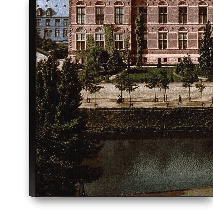 Une version en couleur de la célèbre épreuve photomécanique du Rijksmuseum sur la Museumplein à Amsterdam, aux Pays-Bas. La photo d'époque a été prise à Stadhouderskade entre 1890 et 1900 et restaurée numériquement par mes soins afin que le tirage soit beau et clair sur toile ou dibond.