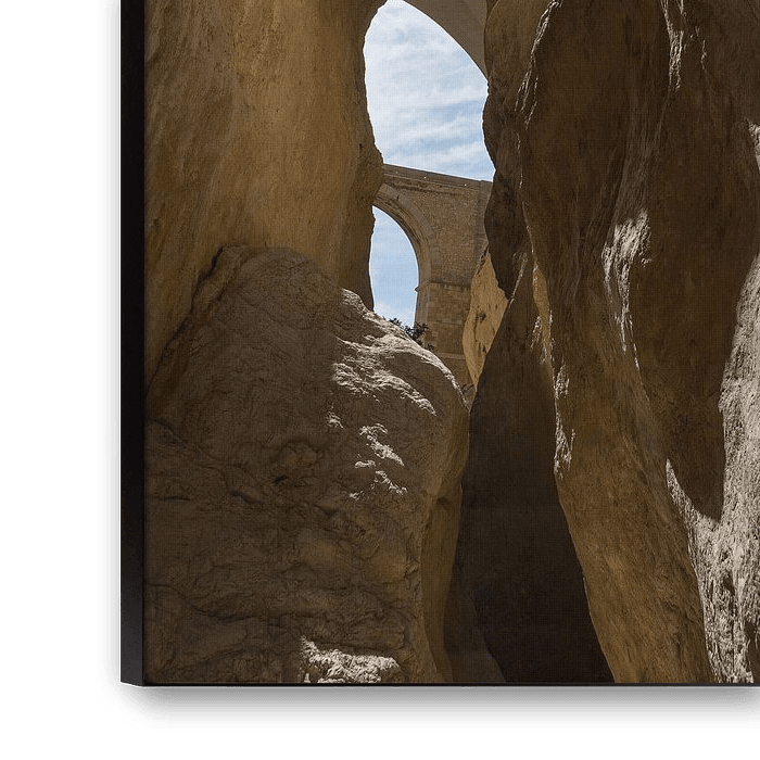 Dans le passé, la gorge représentait une barrière géographique entre les comtés de Marina Alta et Marina Baixa.Seul un dangereux col de montagne qui longeait les falaises permettait de passer d'un côté à l'autre. Pour créer une connexion artificielle entre les rochers, un tunnel et des ponts ont été construits. Ces structures sont encore considérées comme des chefs-d'œuvre d'ingénierie dans la province d'Alicante. L'association de rochers d'une centaine de mètres de haut et d'une architecture de pont exceptionnelle m'a inspiré pour dédier une série de photographies aux gorges de Mascarat. Les formes rocheuses naturelles rencontrent des accroches architecturales qui ont été autrefois créées par des mains humaines.