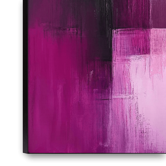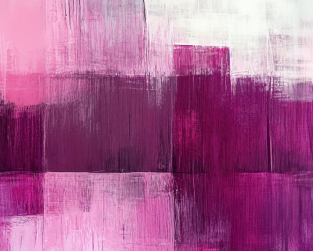 Abstrait rose - Nuances de sérénité - Cette peinture abstraite présente un jeu de rectangles et de carrés superposés de différentes tailles, dominés par des nuances de rose et de blanc, la texture contribuant à un effet de profondeur.