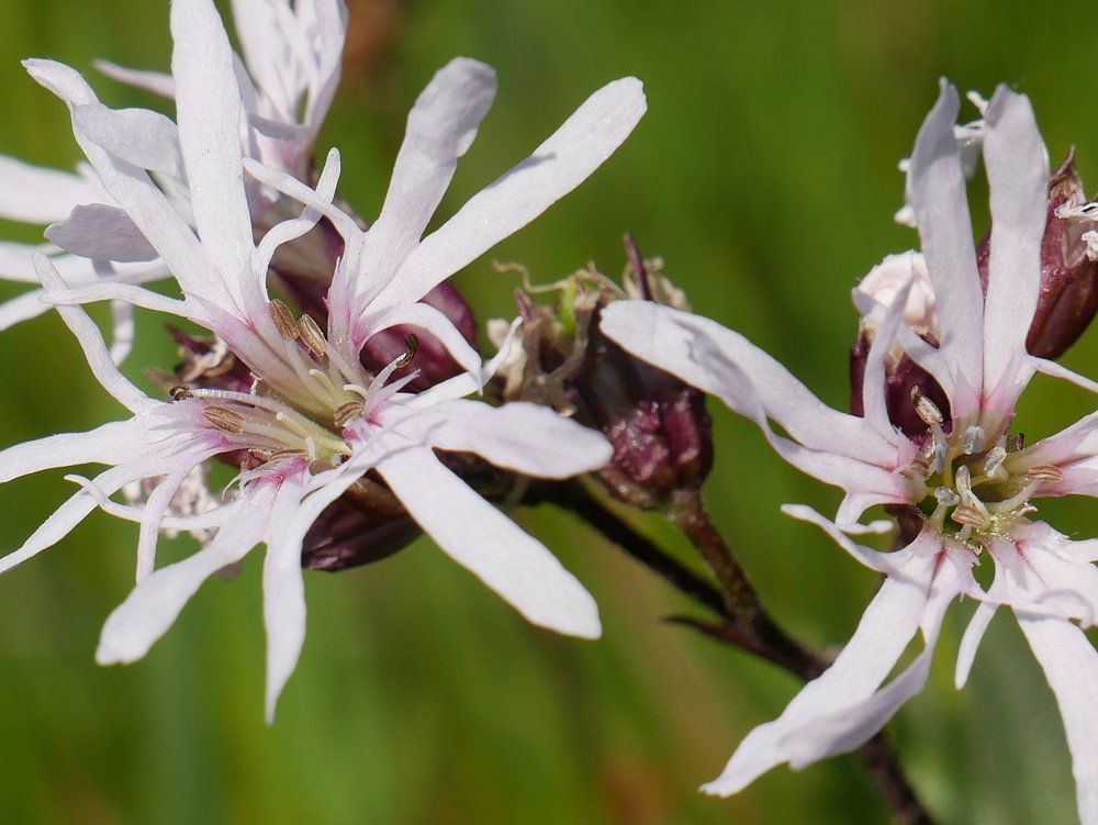 Habituellement, il est rose, mais il arrive qu'il soit blanc. La photo a été prise avec un objectif macro, ce qui donne un résultat très net. Une berme et une usine de foin pour quelques circonstances de nature.