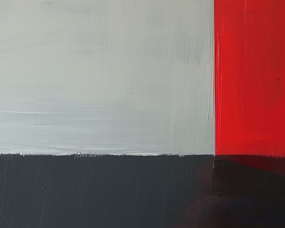 Détails : peinture abstraite, géométrique, monochrome, art moderne, rouge blanc noir, minimaliste, contemporain, contraste de couleurs, puissant, vibrant