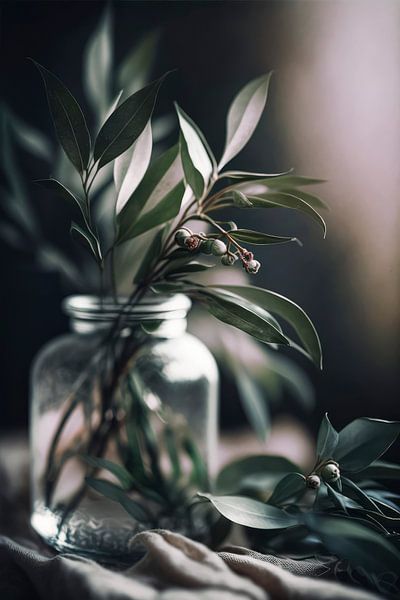 Achetez ce nature morte Ruscus dans un petit vase par Treechild sur toile, aluminium, ArtFrame ou photographie (encadrée), impression d'art en haute qualité et tout format.