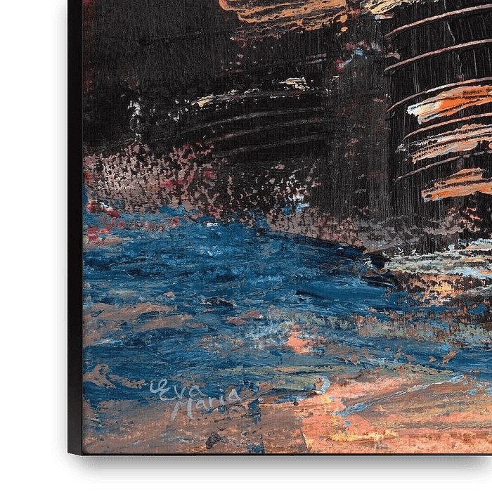 Le tableau "Urban Rhythm" présente une vue abstraite de la ville, composée de couches de couleurs, de textures et de mouvements. Les formes des bâtiments s'assemblent pour créer un paysage urbain dans lequel vous pouvez découvrir quelque chose de nouveau à chaque fois.