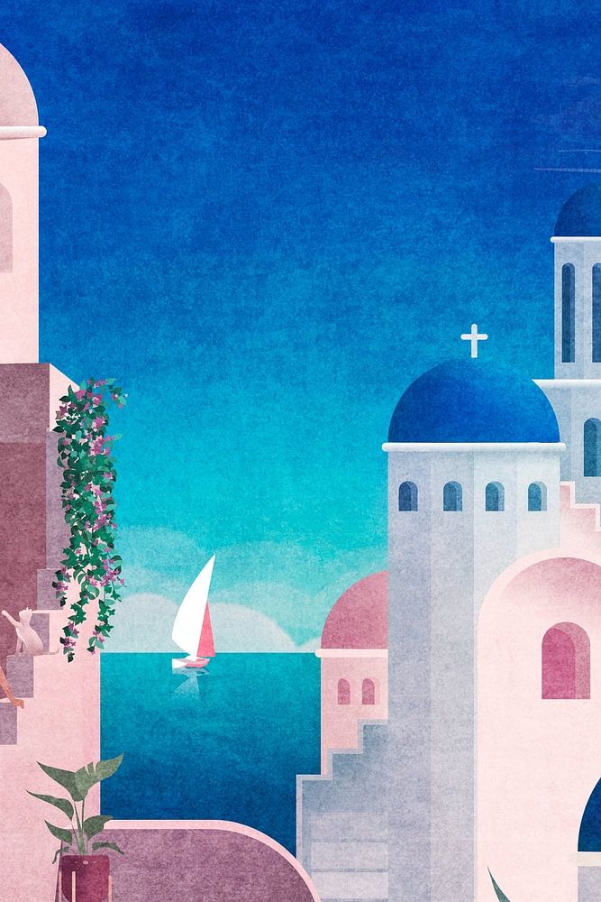 Acheter ce illustration Santorin par Emel Tunaboylu by The Artcircle sur toile, aluminium, ArtFrame ou photographie (encadrée), impression d'art en haute qualité et tout format.