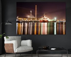 Een schip ligt aangemeerd in de tweede petroleumhaven. Deze haven, vlakbij Pernis in Rotterdam, wordt gedomineerd door zware industrie, olie raffinaderij en tanker opslagcapaciteit