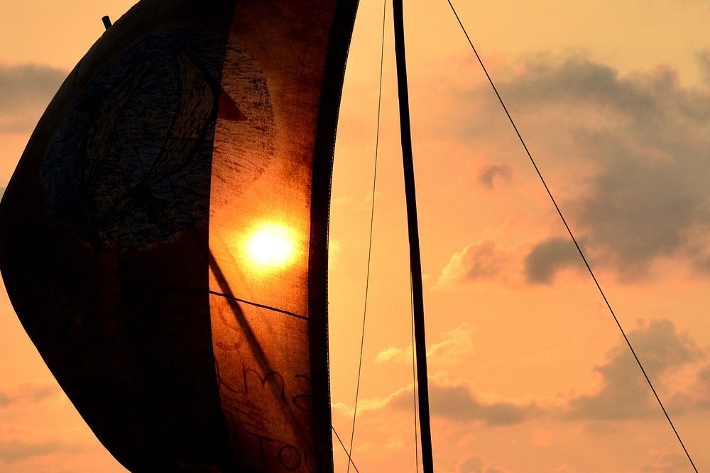 Alors que le soleil descend à l'horizon, la silhouette d'un bateau de pêche se découpe élégamment contre le ciel rougeoyant de Negombo. La plage, calme et presque déserte, semble figée dans le temps, tandis que la voile du bateau capte les dernières lueurs du jour. Une vue envoûtante où la mer, le sable et le ciel se rencontrent.