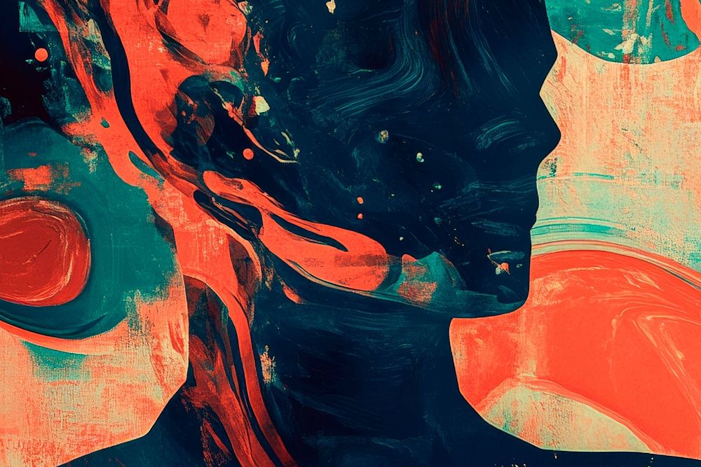 Un jeu de couleurs hypnotisant qui enveloppe les contours d'une figure stylisée, tandis que des nuances vives de bleu et d'orange se fondent harmonieusement. Cette élégance dynamique respire la créativité et l'inspiration et confère à chaque pièce une atmosphère particulière. Idéal pour un salon moderne où les conversations et les pensées peuvent circuler.