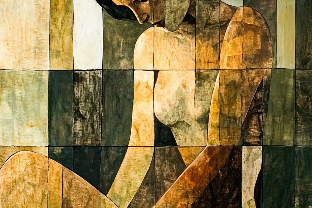 Cette peinture combine la puissance des lignes abstraites et des influences cubistes pour créer une composition sophistiquée. Les couleurs tamisées et la silhouette subtile d'une femme créent un look intemporel. Parfaite pour les intérieurs modernes, elle donne de la profondeur et du caractère à n'importe quel espace, qu'il s'agisse d'une chambre ou d'un bureau. L'interaction des formes et des nuances attire l'attention sans pour autant dominer, ce qui en fait une œuvre d'art polyvalente qui s'intègre parfaitement dans une variété de styles.