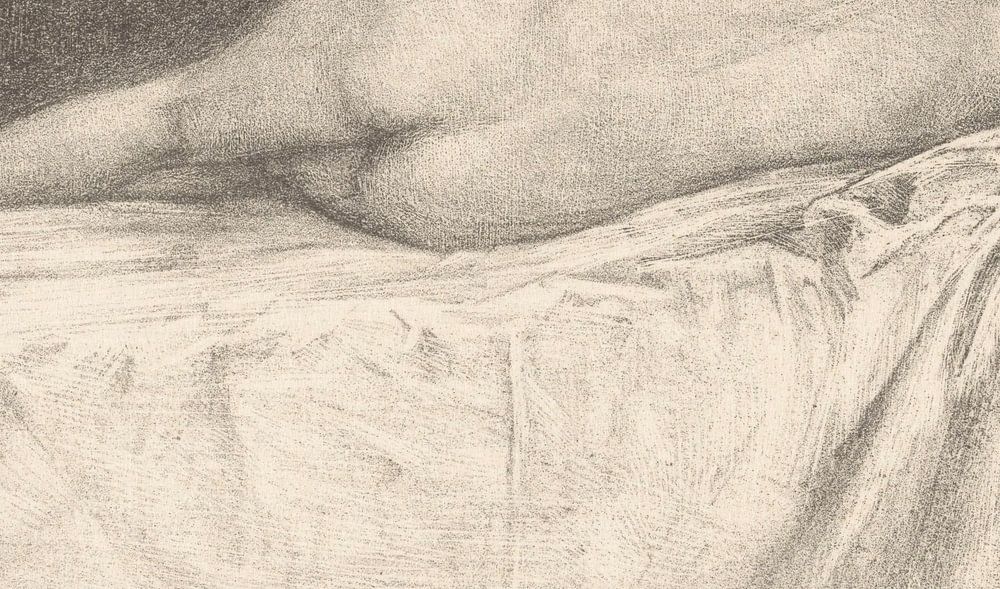 Portrait d'une femme allongée nue, dos à l'artiste, un portrait nu. Les jambes, les fesses, les hanches et le dos sont exposés dans le portrait.