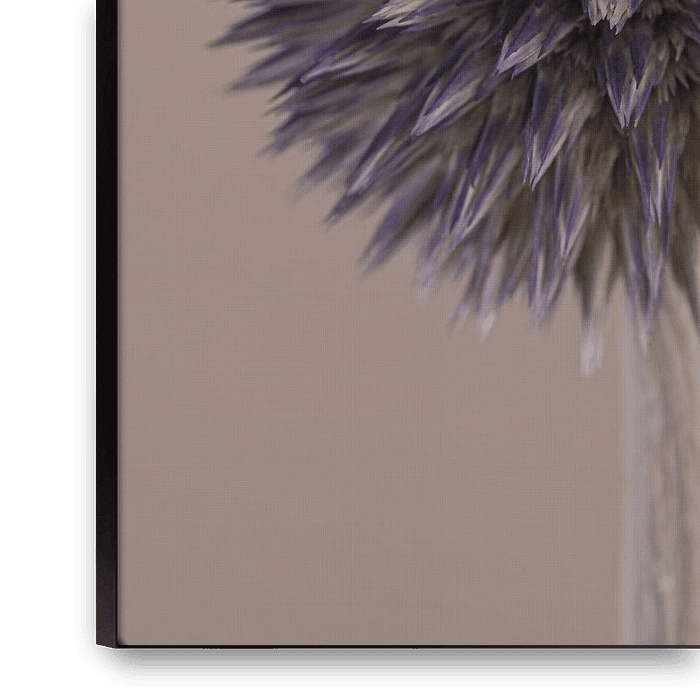 Achetez cette œuvre d'art florale Simplicité : Portrait d'une fleur de l'échinopode (Echinops) par Marjolijn van den Berg sur toile, aluminium, ArtFrame ou photographie (encadrée), impression d'art en haute qualité et tout format.