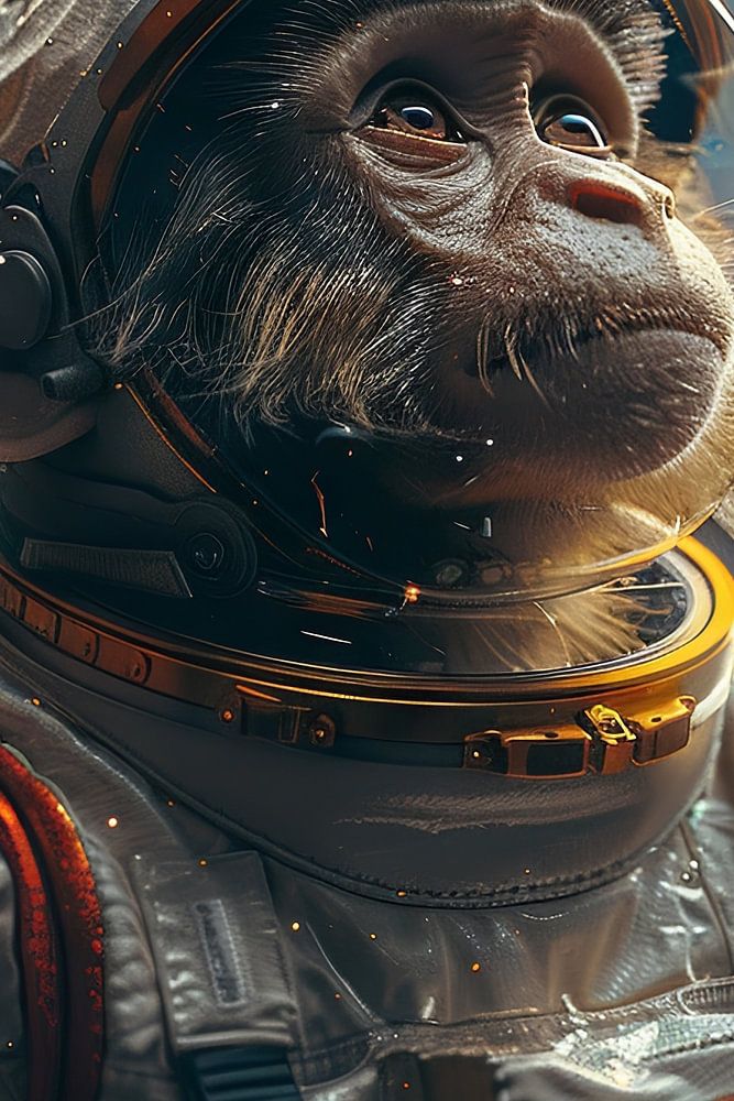 Impressionnante image de synthèse d'un astronaute singe représenté flottant dans l'espace.