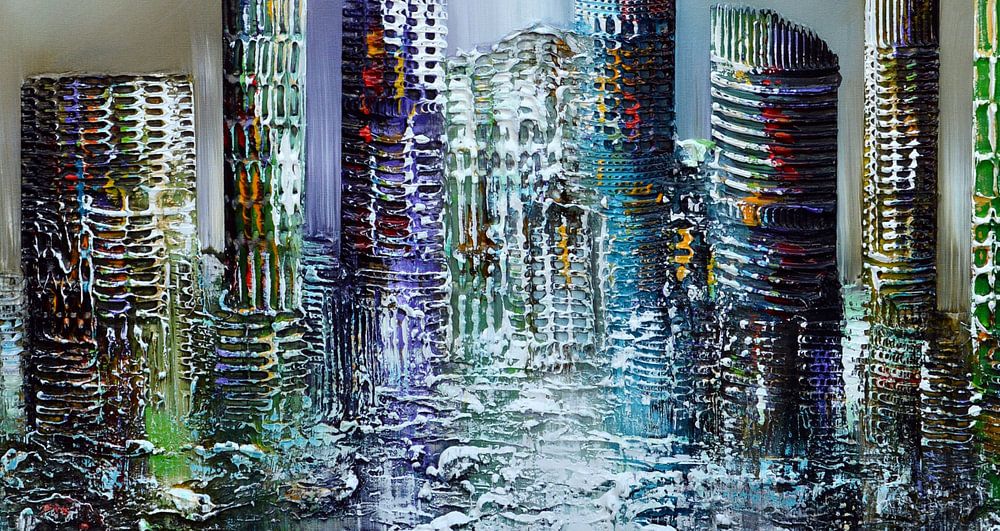 Achetez cette œuvre d'art abstraite Skyline City par Gena Theheartofart sur toile, aluminium, ArtFrame ou photographie (encadrée), impression d'art en haute qualité et tout format.