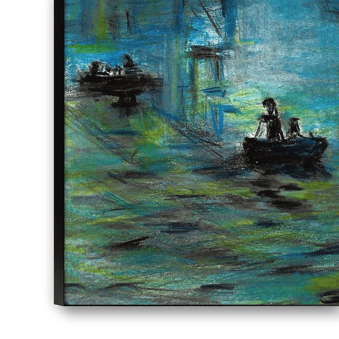 Tableau peint au pastel à l'huile et à la craie, inspiré par Claude Monet.