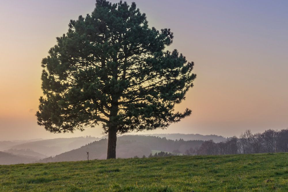 Dieses Foto entstand an einem Abend in Eikamp, im Bergischen Land. Während sich die Sonne hinterm Horizont versteckte, zog von der anderen Seite die Nacht ein - ein wunderschöner Farbverlauf, der sich über den gesamten Himmel erstreckt.