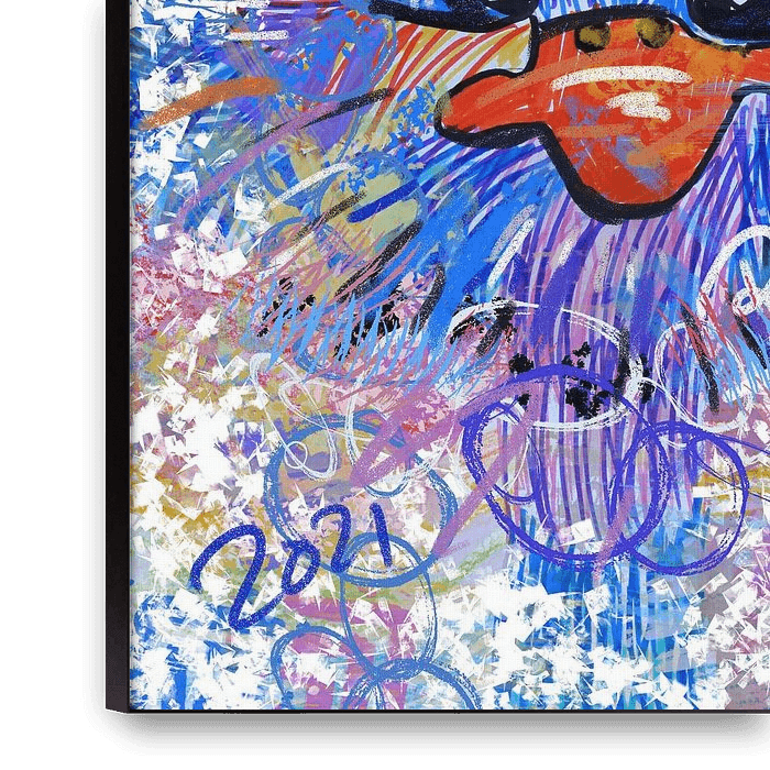 Une explosion de couleurs et de formes. C'est peut-être la description la plus appropriée de cette œuvre. Cette œuvre d'art est le fruit d'une collaboration avec mon fils. Lorsqu'il est rentré à la maison avec une magnifique autruche colorée qu'il avait fabriquée à l'école avec des marqueurs et des crayons de cire, j'ai immédiatement vu…