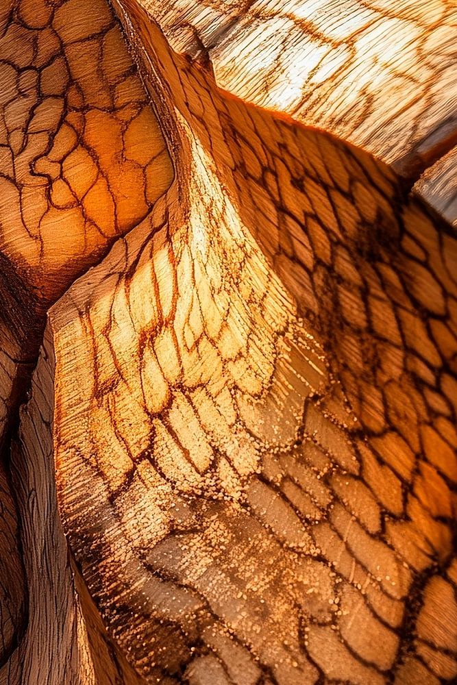 Un jeu fascinant d'ombre et de lumière se déploie sur la surface texturée du bois, dont les fissures et les motifs dégagent une chaleur terreuse. Les teintes douces et harmonieuses invitent à la méditation et au calme. Idéal pour le salon, où il crée une atmosphère accueillante et inspire les conversations.