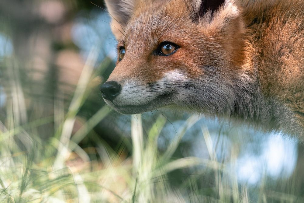 La tête du renard se détache nettement de l'avant-plan et de l'arrière-plan doux. Cela en fait une image d'une beauté unique pour votre mur. Cette photo est en taille réelle, non recadrée et convient parfaitement aux grands tirages.