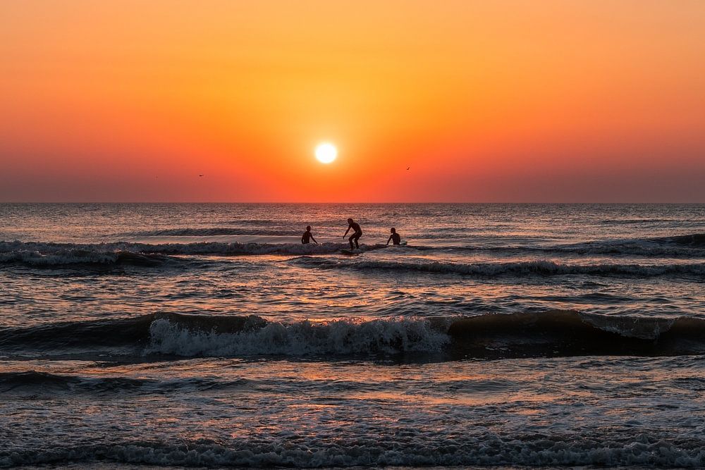 Cette image vous invite à apprécier l'harmonie parfaite entre l'action du surf et la splendeur naturelle du coucher de soleil. Elle nous rappelle que la mer et le ciel s'unissent pour former une toile de fond spectaculaire pour des moments d'aventure. Laissez-vous inspirer par la session de surf au coucher du soleil en découvrant cette vue exaltante de la plage de Noordwijk.