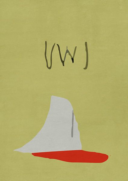 Les conséquences d'un délicieux désastre. Cette œuvre capture le moment de calme qui suit un événement chaotique. Le fond vert moutarde crée une scène rétro, peut-être légèrement désordonnée. Au bas de l'image se trouve la preuve indéniable : une flaque de ketchup rouge vif. Au-dessus, se détache une forme grise :…