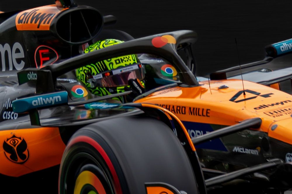 Lando Norris au volant de la voiture MCL39 de l'équipe McLaren Formula 1 lors du Grand Prix de Belgique 2025 sur le circuit de Spa Francorchamps en Belgique.