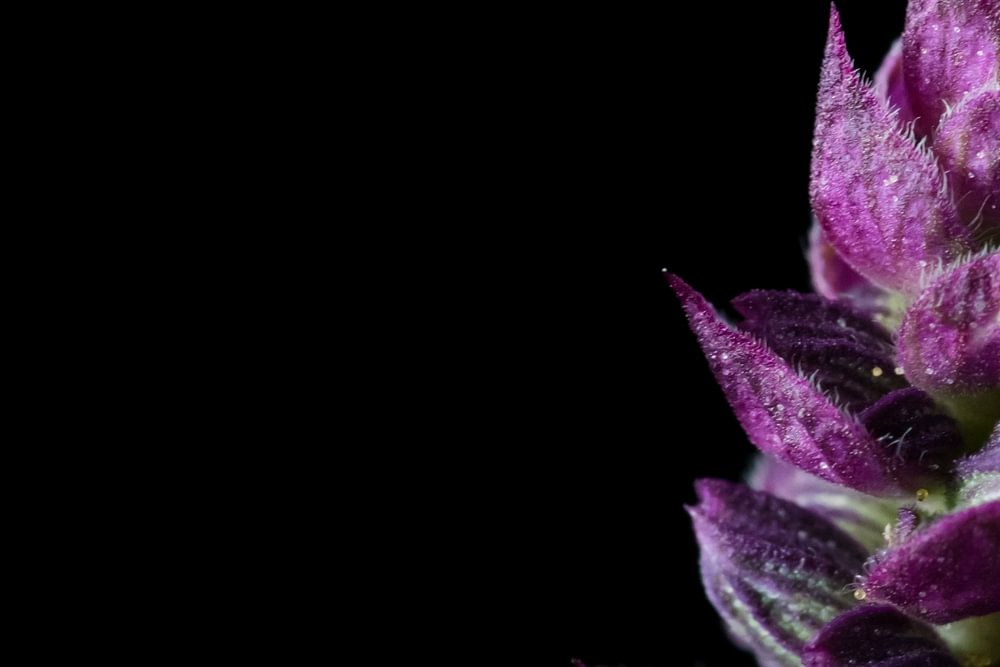 J'adore le contraste entre la tête de la fleur violette et le fond noir.