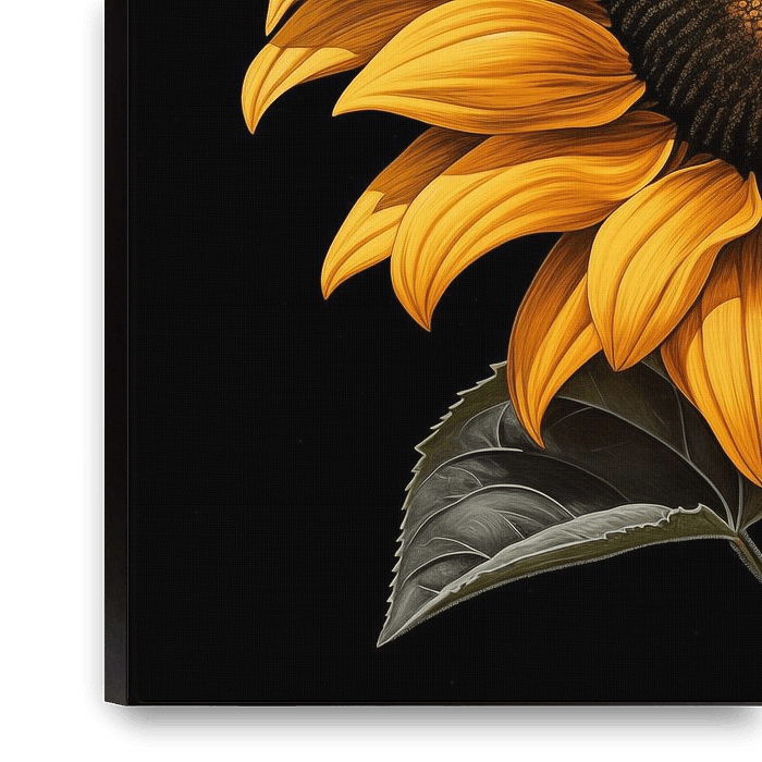 Peinture unique de tournesol à fort contraste, d'un style époustouflant. Avec de belles nuances de couleurs et un design unique, ce tableau est une impression photo élégante qui s'intègre parfaitement dans n'importe quelle pièce. 100% unique et original !