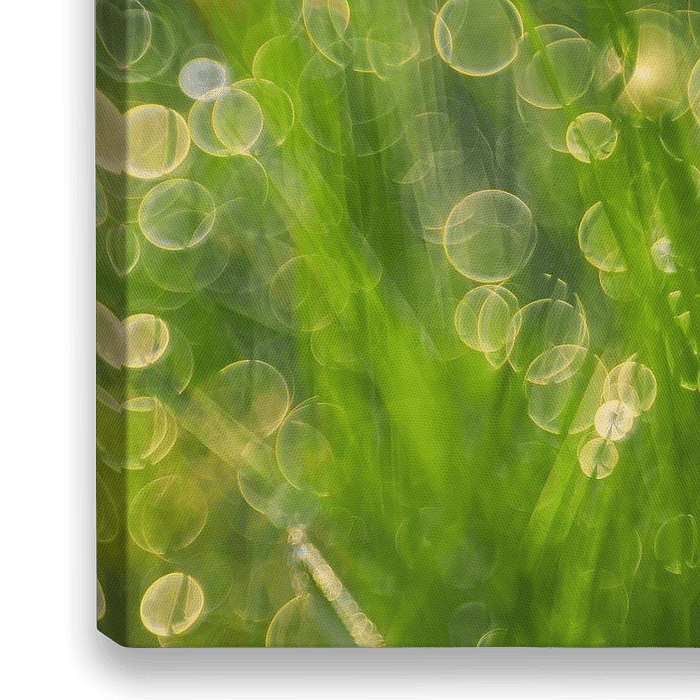 Macrophotographie avec effet artistique de gouttes de rosée dans l'herbe.