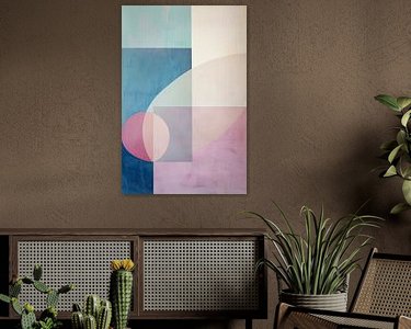 Cette image montre une œuvre d'art abstraite avec une palette de couleurs douces et des formes géométriques fluides.