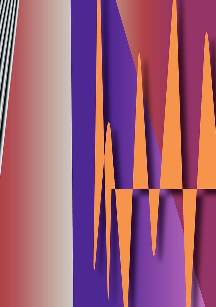 Composition composée de triangles colorés jaunes violets et de rayures sur un fond rouge dégradé