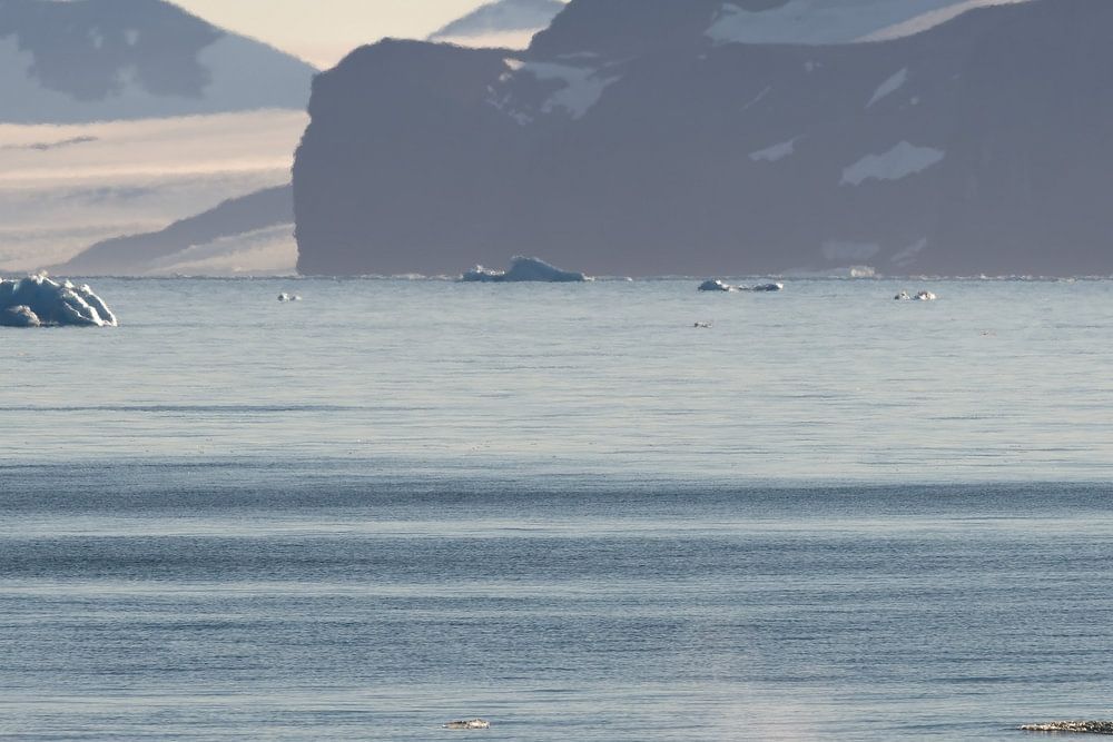 Un groupe d'orques dans le paysage de l'Antarctique. Pris au téléobjectif depuis un navire d'expédition.
