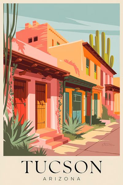 Une vague de couleurs douces et chaudes et de formes typiques du sud-ouest invite à la rêverie. Les charmantes maisons avec leurs façades rustiques et leurs hauts cactus au premier plan donnent un sentiment de détente et d'aventure. Idéale pour le salon, cette œuvre d'art confère à chaque pièce une atmosphère joyeuse et accueillante.
