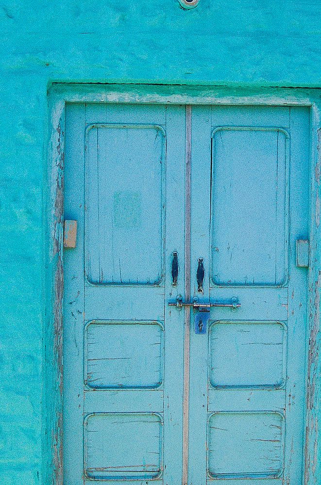 Un Indien avec un turban passe devant une maison aux couleurs vives.
