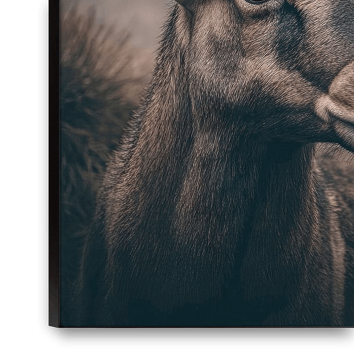 Avec ses cornes majestueuses et torsadées, un animal impressionnant orne la scène, ses yeux respirent le calme et la détermination. Entouré de douces nappes de brouillard, cet être incarne la force de la nature et fascine le spectateur par sa présence exceptionnelle. Un spectacle véritablement fascinant dans la nature sauvage.