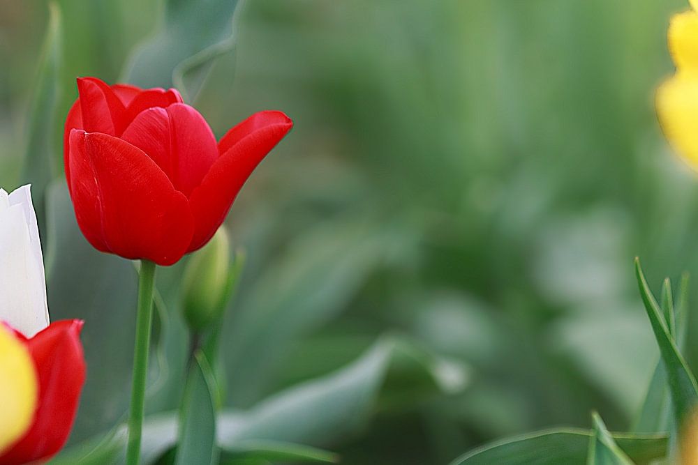 Un champ de tulipes colorées dans les tons rouge, jaune et orange crée une ambiance printanière. par Thomas Heitz