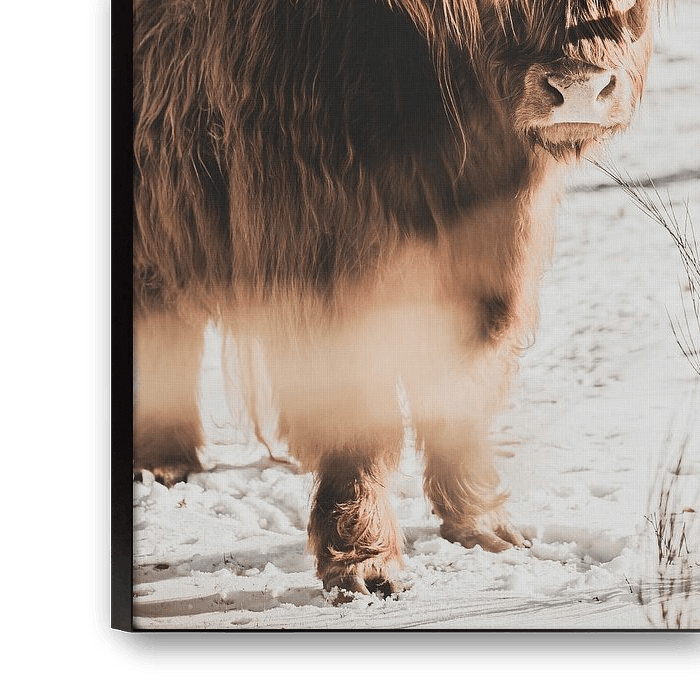 Achetez cette œuvre d'art de paysage Un highlander écossais dans la neige par Melanie Schat sur toile, aluminium, ArtFrame ou photographie (encadrée), impression d'art en haute qualité et tout format.