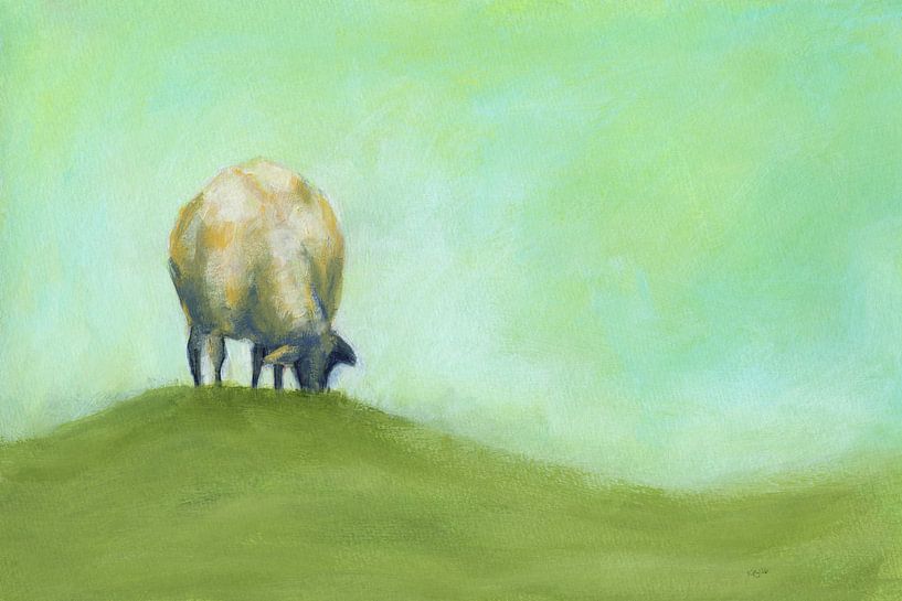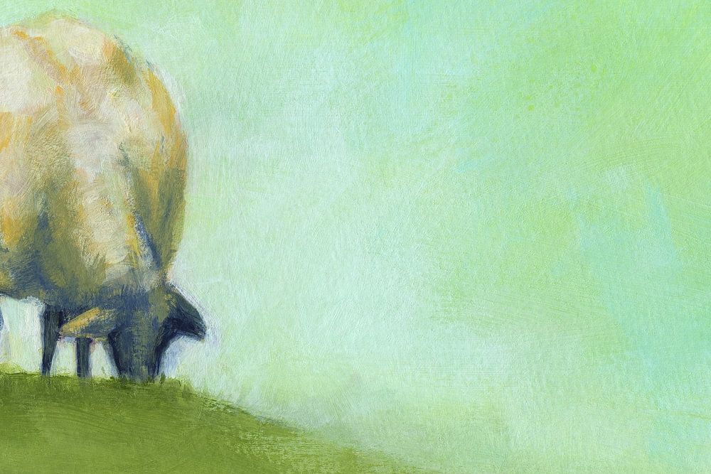 À propos de ‘Un mouton solitaire broute sur une colline’ par Karen Kaspar