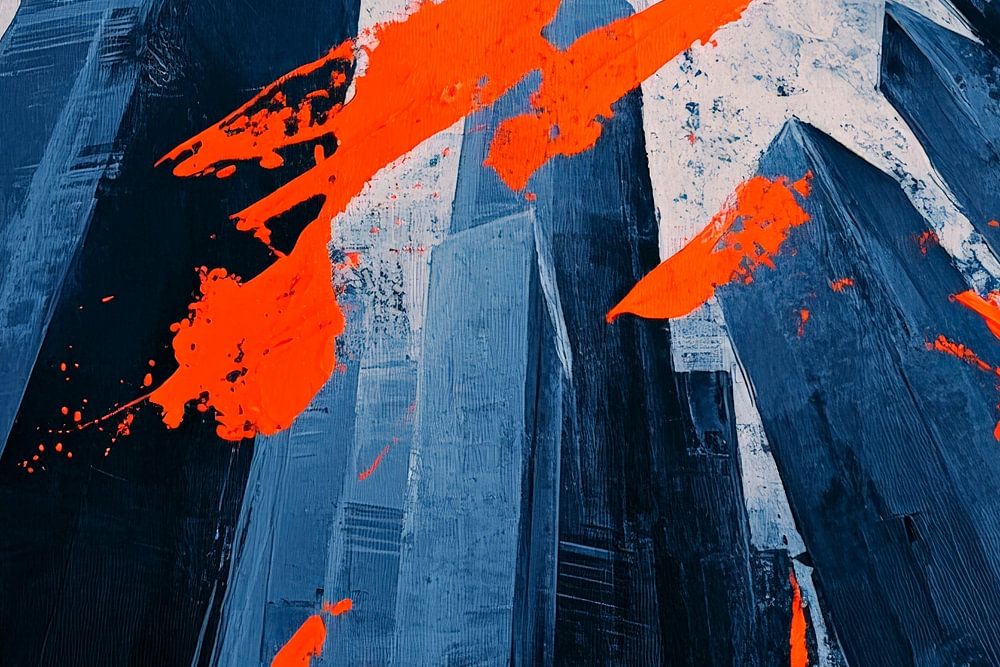 Les puissantes structures de la tour s'élèvent majestueusement dans une mer de ciel bleu profond, tandis que des accents vifs aux reflets rouges dynamisent la scène. Ce jeu de couleurs émotionnel dégage du mouvement et de la force, parfait pour un salon moderne qui doit être enrichi d'un flair urbain et d'une touche de créativité.