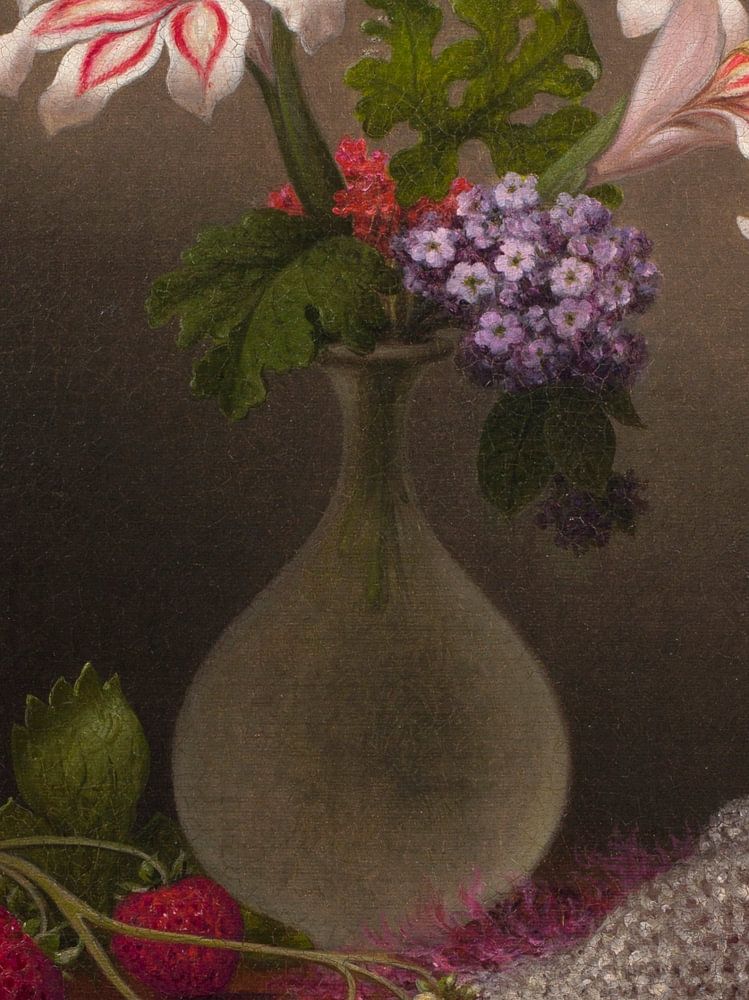 Martin Johnson Heade a célébré le début de l'été avec des teintes de rouge, de blanc et de bleu dans cette peinture. L'artiste aimait les fleurs et décrivait la cueillette quotidienne "d'un beau bouquet pour la table du petit déjeuner". On pourrait l'imaginer en train de cueillir les lys blancs, les héliotropes rouges et bleuâtres et les fraises alors qu'ils mûrissaient et fleurissaient tous au début du mois de juin. Les délicates fleurs d'héliotrope étaient particulièrement appréciées des jardiniers du XIXe siècle, qui comparaient leur doux parfum à celui d'une tarte aux cerises.