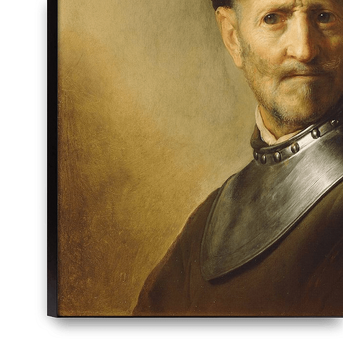 Achetez Un vieil homme en costume militaire, Rembrandt van Rijn en tant que reproduction sur toile, aluminium, ArtFrame ou photographie (encadrée), impression d'art en haute qualité et tout format