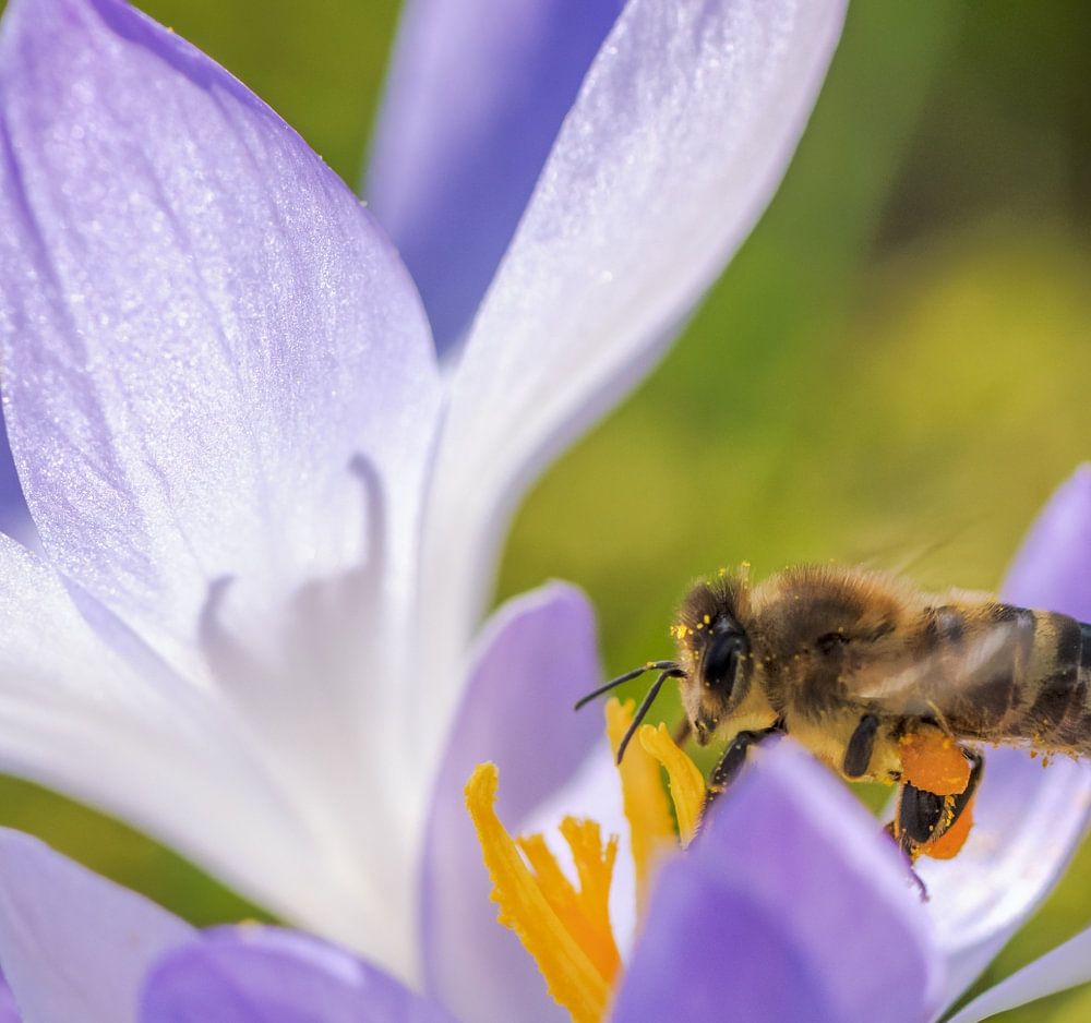 A propos de "Une abeille vole vers une fleur de crocus violet"