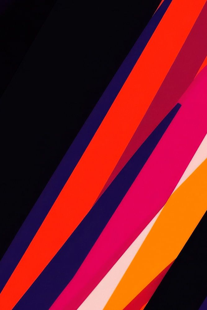 Une interaction vibrante de couleurs vives se déploie en courants dynamiques et diagonaux. Des accents violets et orangés dansent sur un fond profond et sombre qui renforce l'énergie de cette explosion de composition. Les lignes audacieuses et acérées créent un sentiment de mouvement et de passion qui entraîne le spectateur dans un tourbillon créatif.