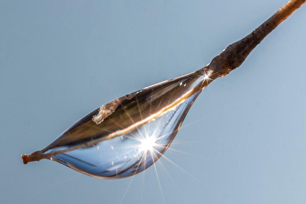 Une goutte de rosée accrochée à une branche par Thomas Heitz