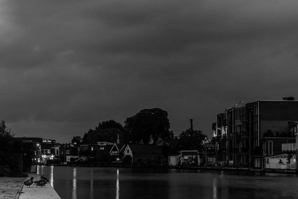 Une photo calme d'une soirée d'été sur les rives du Rhin. Le monde dort déjà et même les canards se préparent pour un nouveau jour.