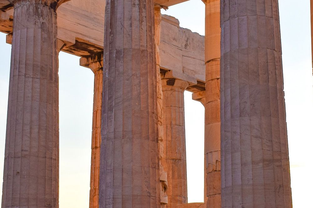 Les rayons du soleil brillent entre les colonnes du majestueux Parthénon à Athènes, donnant à l'ancien monument grec une apparence enchanteresse. Les colonnes du Parthénon, chacune avec son chapiteau sculpté unique, se dressent majestueusement et gracieusement dans la chaude lumière du soleil. Le contraste entre le ciel bleu clair et les teintes chaudes des colonnes et des murs en marbre antique est à couper le souffle. Construit au Ve siècle avant J.-C. en l'honneur de la déesse grecque Athéna, le Parthénon était autrefois le centre de la civilisation grecque et est aujourd'hui connu comme l'un des exemples les plus impressionnants de l'antiquité classique. Le soleil qui brille à travers les colonnes du Parthénon semble symboliser l'essence de la culture grecque et sa quête de la connaissance et de la beauté. Une visite de l'Acropole figurait depuis longtemps sur ma liste de souhaits et, en décembre 2022, l'un des derniers jours de l'année, j'y étais. C'est un lieu absolument magique et j'ai été immensément heureux de la belle lumière de cette fin d'après-midi.