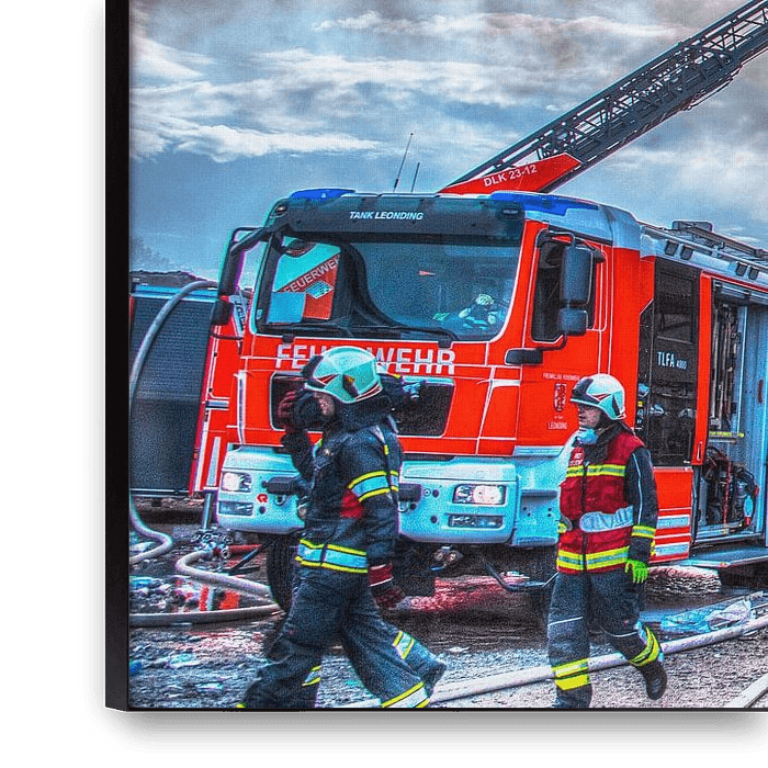 Achetez cette photo Utilisation d'une échelle à double plateau tournant pour les grands feux par Hermann Kollinger sur toile, aluminium, ArtFrame ou photographie (encadrée), impression d'art en haute qualité et tout format.