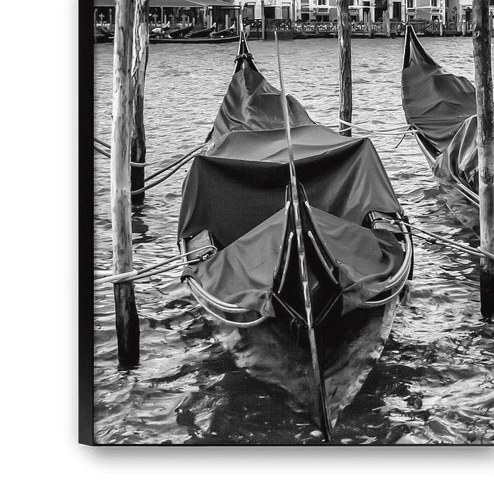 Venise est l'une des villes les plus romantiques du monde, avec ses ruelles étroites et ses canaux, ses palais luxueux et ses magnifiques églises, tous inchangés depuis des siècles. La ville a été construite sur l'eau et possède une richesse époustouflante de sites touristiques. Une promenade sur le Grand Canal permet de se faire une bonne idée de l'ambiance de la ville et de ses bâtiments. Venise a été construite au milieu d'une lagune sur plus de 100 îles. Ces îles sont reliées entre elles par plus de 400 ponts et plus de 150 canaux servent de routes. La place Saint-Marc, avec la tour de Saint-Marc, est la place la plus importante et la plus connue de Venise. Un charmant motif en noir et blanc avec des gondoles. Un ornement mural décoratif !