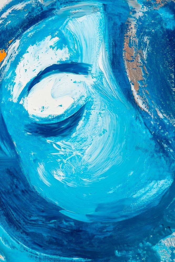 Dans des tons bleus doux, entrecoupés de tourbillons orange vifs, se déploie une composition harmonieuse qui respire le calme et la créativité. Les formes douces semblent couler et invitent à la détente. Idéal pour un salon moderne ou un bureau inspirant, où il stimule la créativité et crée une atmosphère apaisante.