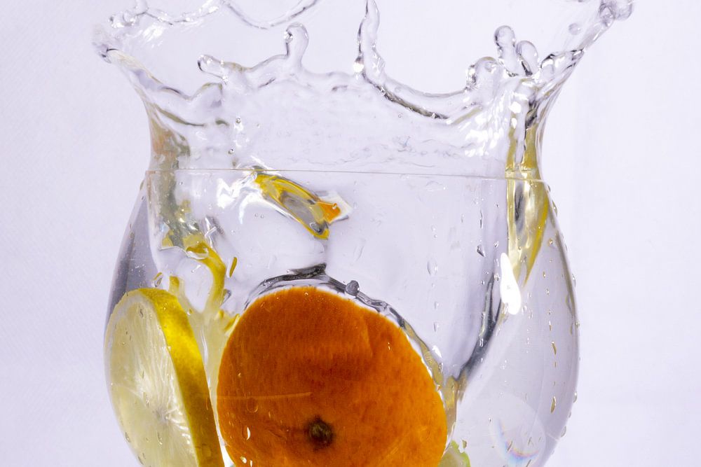 Les fruits et l'eau sont une bonne combinaison. Voici le moment où les fruits entrent dans l'eau.
