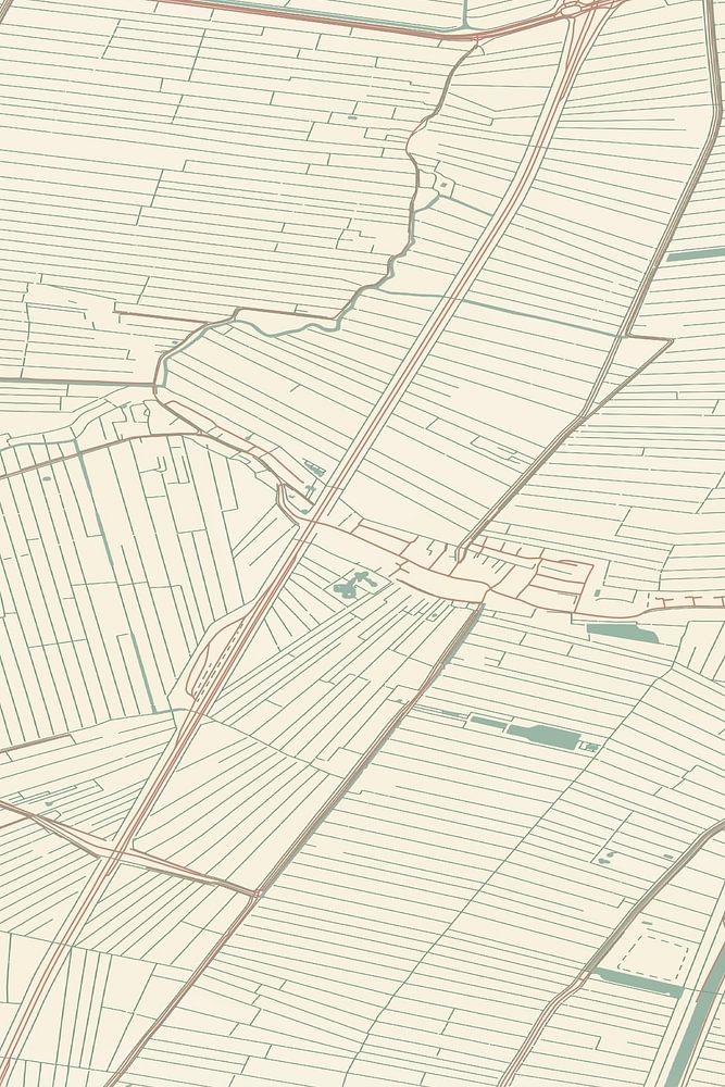 Carte rétro de Hoogblokland, située dans la municipalité de Molenlanden, province de Hollande méridionale. La carte montre les routes publiques, les cours d'eau (lacs, ruisseaux et fossés) et les forêts dans et autour de Hoogblokland. En outre, la carte contient les coordonnées de Hoogblokland.