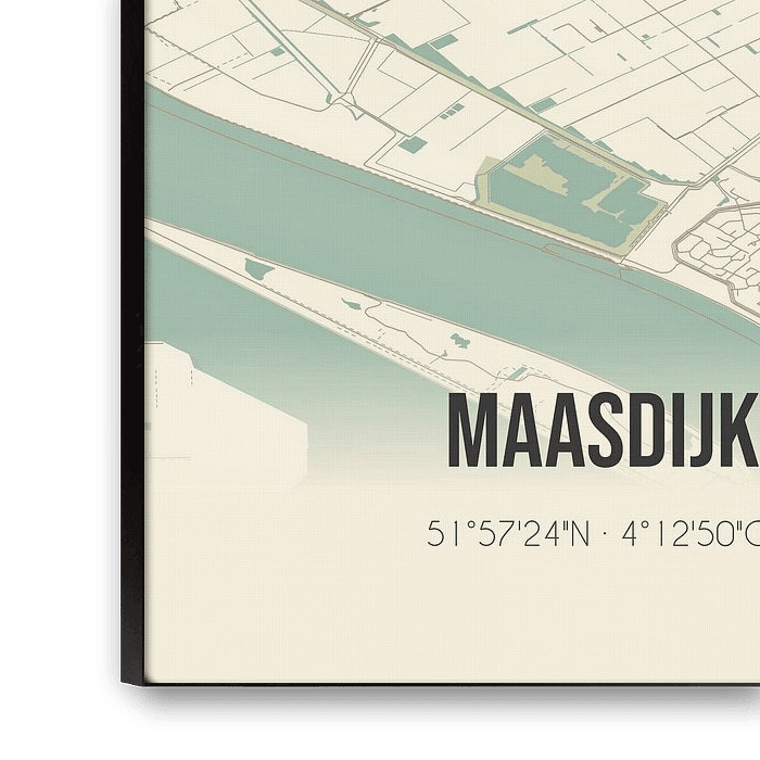 Carte rétro de Maasdijk, située dans la municipalité de Westland, province de Hollande méridionale. La carte montre les routes publiques, les cours d'eau (lacs, ruisseaux et fossés) et les forêts dans et autour de Maasdijk. En outre, la carte contient les coordonnées de Maasdijk.